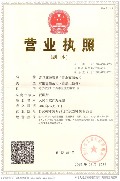 营口鑫源普利卡管业有限公司长期以来,始终坚持以公司信誉和产品质量赢得用户,愿竭诚为广大用户服务。