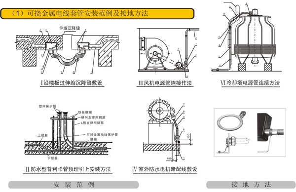 可挠金属电线套管安装范例及接地方法