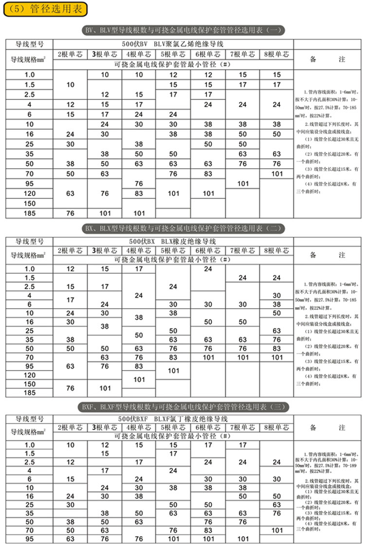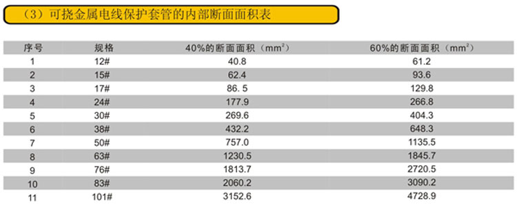 可挠金属电线保护套管的内部断面面积表